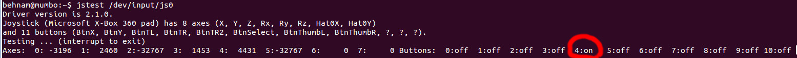 sudo jstest /dev/input/js |