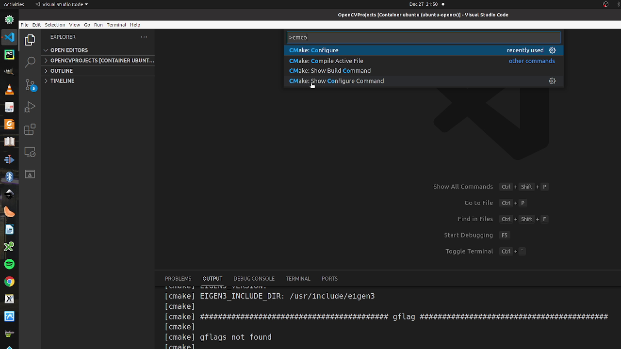 Now press ctrl+shit+p to open the pallet windows, and type: cmconf