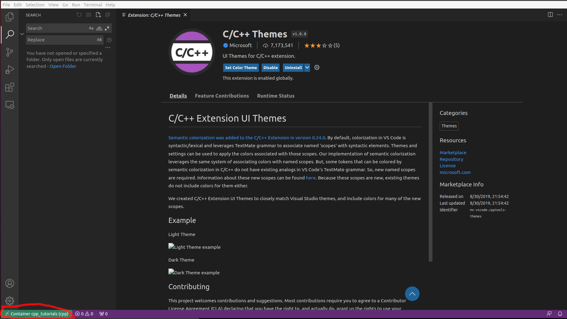 if this is the first time that you are doing this, it will initialize a new instance of VSCode, now in the new VSCode, at the bottom, you can see the connected container: